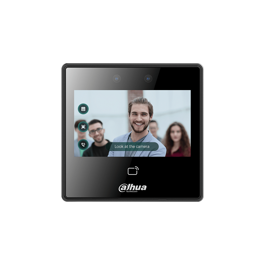 Dahua DHI-ASI3213A-W - AI терминал доступа с распознаванием лиц c Wi-Fi. 4,3-дюймовый сенсорный ЖК-экран; разрешение 480 × 272. 2мп двойная камера с широкоугольными объективами и ИК подсветкой. Разблокировка: лицо, карта и пароль; разблокировать по времени. Пользовательские данные могут храниться на терминале; до 3000 изображений лиц, до 5000 карт; автономная работа. Расстояние от камеры до лица: 0,3-1,5 м. Точность распознавания лица 99,9%; скорость проверки лица 0,2 с.