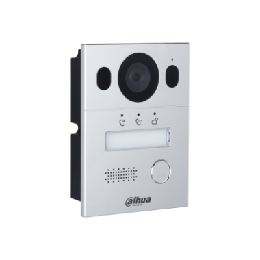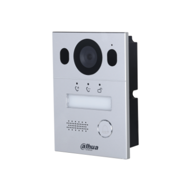 Вызывная панель с разрешением камеры 2мп и CMOS сенсором, угол обзора по горизонтали 110°, панель из алюминия, уровень защиты IP65, IK07. Поддержка режима "Ночь" и голосового оповещения. Групповые вызовы. Видео и аудио сообщения. Удаленный доступ через мобильное приложение DMSS. Питание: через 2-проводной контроллер; Выход питания: 12В, 200мА